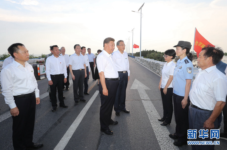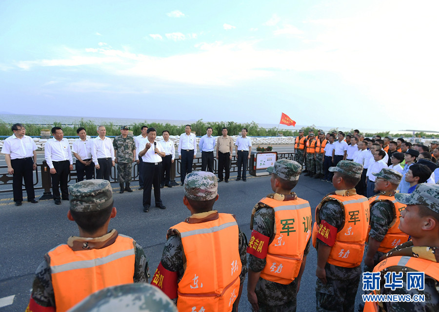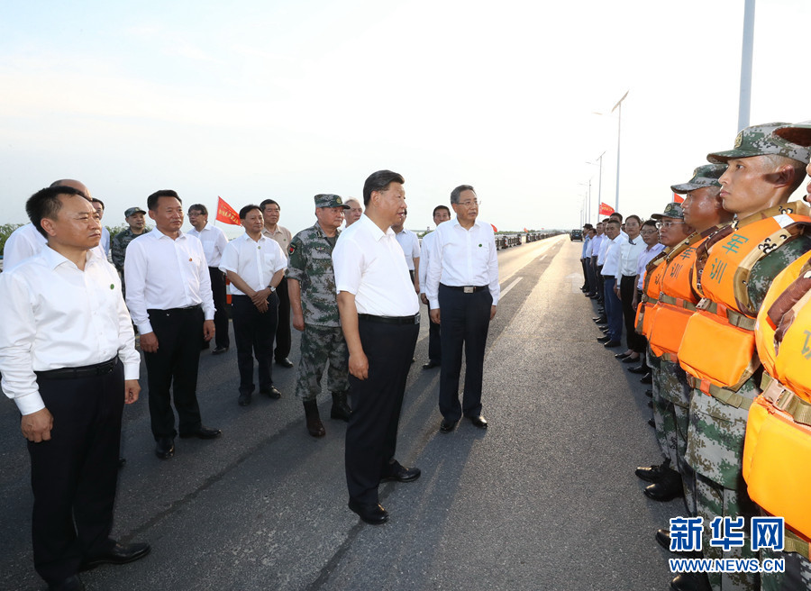 19日下午,習(xí)近平來到合肥市肥東縣十八聯(lián)圩生態(tài)濕地蓄洪區(qū)巢湖大堤羅家疃段考察。今年入汛以來,巢湖水位多次突破歷史極值,合肥市主動啟用十八聯(lián)圩及周邊圩區(qū)蓄洪。習(xí)近平仔細(xì)察看巢湖水勢水情,聽取環(huán)巢湖主要圩口分洪及周邊濕地蓄洪、巢湖綜合治理情況匯報,了解防汛物資和大堤加固情況。他強(qiáng)調(diào),要堅持濕地蓄洪區(qū)的定位和規(guī)劃,盡快恢復(fù)生態(tài)濕地蓄洪區(qū)的行蓄洪功能和生態(tài)保護(hù)功能。他指出,當(dāng)前,南方有關(guān)地方要繼續(xù)抓好防汛救災(zāi)工作,同時要嚴(yán)防次生災(zāi)害。北方有關(guān)地方要對可能發(fā)生的汛情加強(qiáng)警戒和防范,全面落實(shí)防汛救災(zāi)各項(xiàng)工作,確保安全度汛,確保人民群眾生命財產(chǎn)安全。