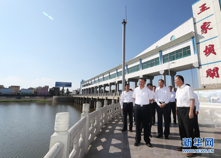 8月18日至21日,中共中央總書記、國家主席、中央軍委主席習(xí)近平在安徽省考察。這是18日下午,習(xí)近平在阜陽市阜南縣王家壩閘考察,了解安徽省防汛工作及王家壩開閘分洪情況。 新華社記者 王曄 攝