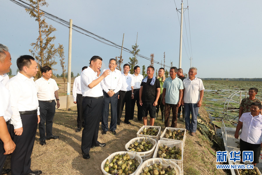 8月18日至21日,中共中央總書記、國家主席、中央軍委主席習(xí)近平在安徽省考察。這是18日下午,習(xí)近平在阜陽市阜南縣蒙洼蓄洪區(qū),同正在采摘芡實(shí)的鄉(xiāng)親們親切交流,了解災(zāi)后生產(chǎn)恢復(fù)情況。 新華社記者 鞠鵬 攝