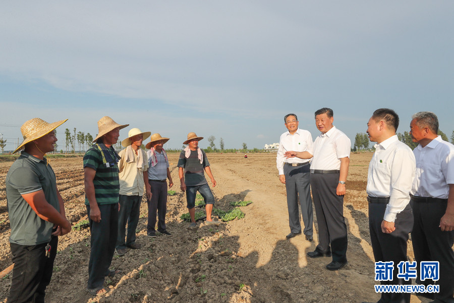 8月18日至21日,中共中央總書記、國家主席、中央軍委主席習(xí)近平在安徽省考察。這是18日下午,習(xí)近平在阜陽市阜南縣蒙洼蓄洪區(qū),同正在退水地塊補(bǔ)種蔬菜的鄉(xiāng)親們親切交流。 新華社記者 鞠鵬 攝