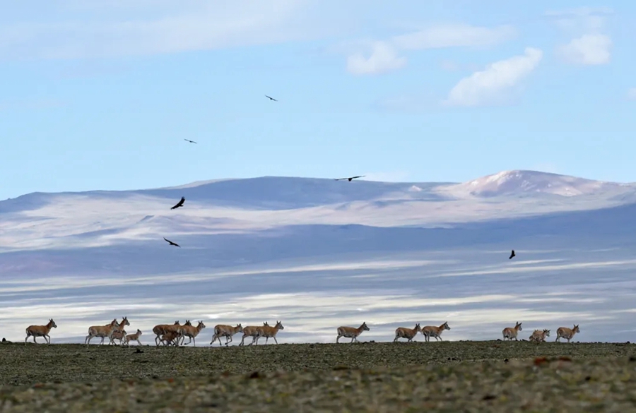 羌塘無人區(qū)內(nèi)的藏羚羊群 覺果 攝