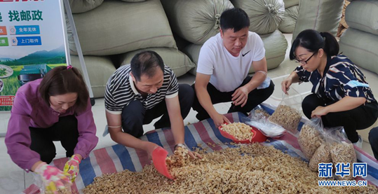 9月3日,陜西勉縣楊莊村村民將木耳中的“白富美”——玉木耳裝袋打包。新華網(wǎng)記者李志強(qiáng) 攝