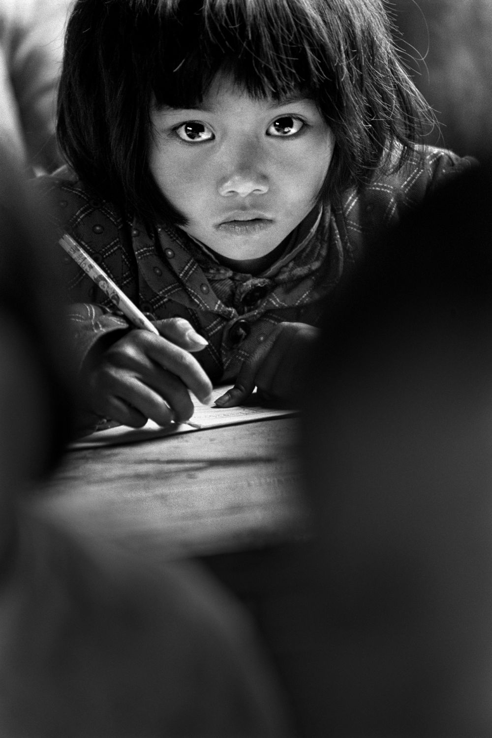 ↑ 這是四川大涼山彝族自治州昭覺(jué)縣一所縣城小學(xué)的孩子們正在上課(2004年11月8日拍攝)。