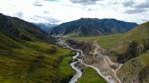 青海省果洛藏族自治州瑪沁縣雪山鄉(xiāng)陰柯河村周邊草場(chǎng),遠(yuǎn)處可看到阿尼瑪卿雪山一角(8月20日攝,無(wú)人機(jī)照片)。新華社記者 張龍 攝