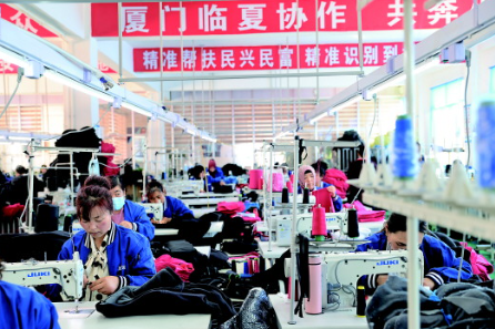 廈門(mén)援建臨夏的廈臨遠(yuǎn)達(dá)服飾扶貧車(chē)間。
