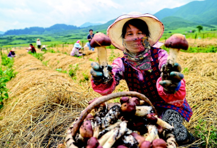 廈門(mén)援建和政縣夏潤(rùn)赤松茸種植基地。赤松茸豐收農(nóng)戶(hù)樂(lè)開(kāi)懷。(圖片均為黃嶸攝)