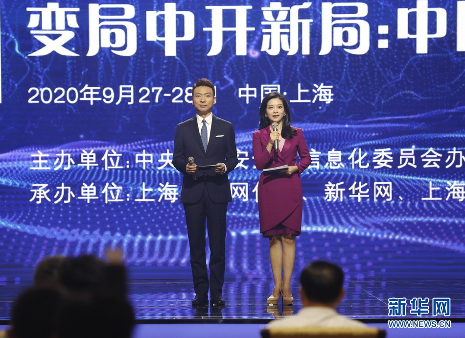 9月27日,由中央網(wǎng)信辦、上海市委網(wǎng)信委、新華通訊社聯(lián)合主辦的“2020中國網(wǎng)絡(luò)媒體論壇”在上海開幕。來自政府、學(xué)界、業(yè)界的嘉賓圍繞“變局中開新局:中國網(wǎng)絡(luò)媒體的責(zé)任與使命”這一核心主題展開深入探討和交流。圖為論壇主題演講環(huán)節(jié)主持人。新華網(wǎng) 陳杰 攝