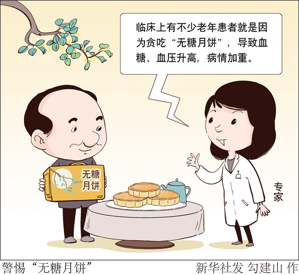 另外,市場上所謂的“無糖月餅”,是指餡料中不含蔗糖的月餅,但月餅本身含有大量的淀粉,可分解成葡萄糖。臨床上有不少老年患者就是因為貪吃“無糖月餅”,導(dǎo)致血糖、血壓升高,病情加重。