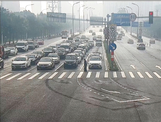 接下來會發(fā)生什么呢?通過視頻監(jiān)控可以看到,東西向的車輛有一部分開始動起來,但老人左手邊三個(gè)車道的車都紋絲不動,等著老人安全走過來。