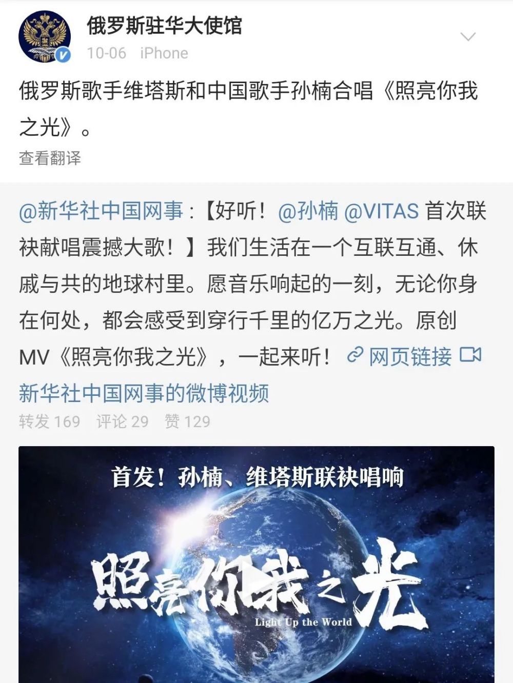 俄羅斯駐華大使館官方微博轉(zhuǎn)發(fā)