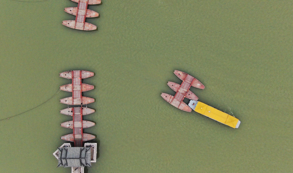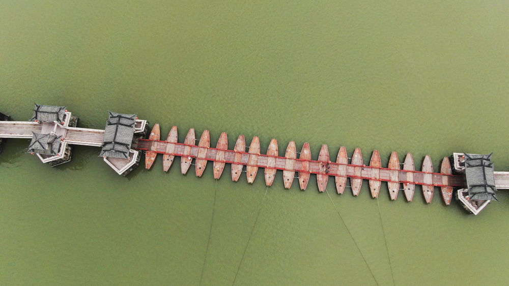 ↑ 廣濟橋中間的浮橋由十八只木船連接而成