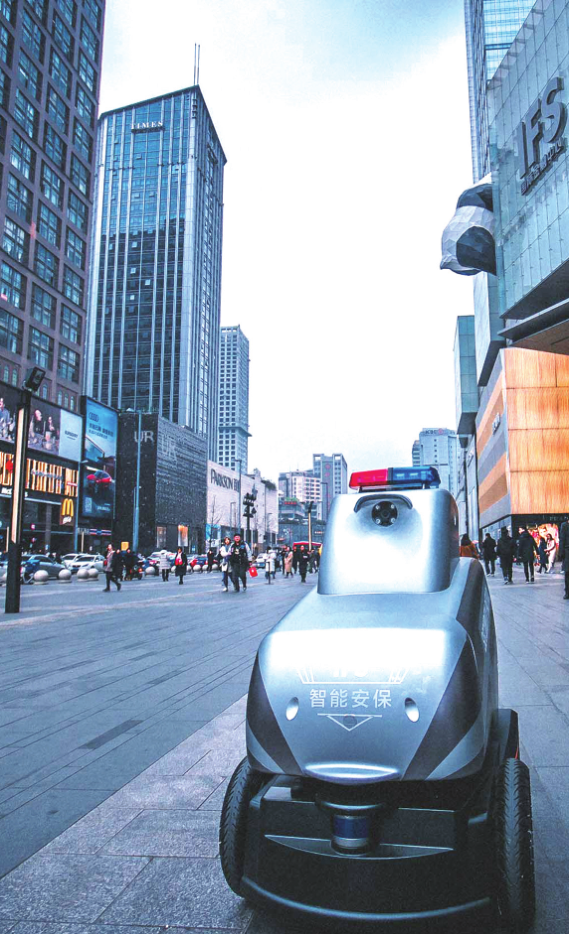 2019 年 1 月 10 日,在成都 IFS 廣場(chǎng)上,一個(gè)移動(dòng)機(jī)器人在廣場(chǎng)上巡邏,遇見前方有行人便會(huì)主動(dòng)避讓,尋找新的巡邏線路