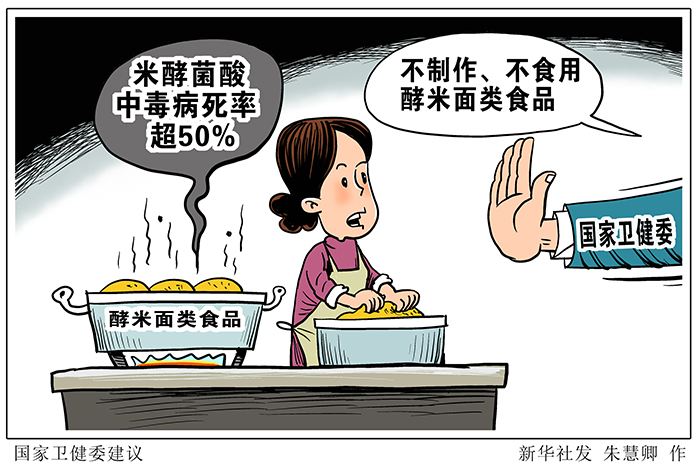 提示指出,酵米面中毒的主要原因是使用了發(fā)霉變質的原料,雖然通過挑選新鮮無霉變原料、勤換水能夠減少被致病菌污染的機會,但為保證生命安全,最好的預防措施是不制作、不食用酵米面類食品。