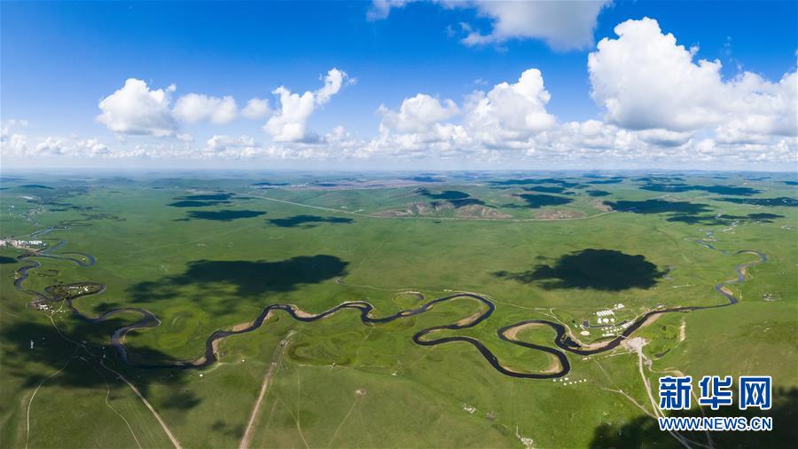 2019年8月25日拍攝的內蒙古呼倫貝爾市陳巴爾虎旗境內的莫日格勒河局部(無人機照片)。新華社記者 沈伯韓 攝