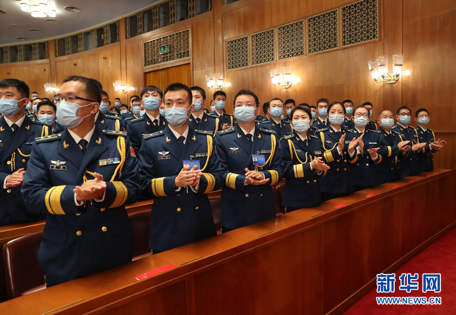??? 10月23日,紀(jì)念中國人民志愿軍抗美援朝出國作戰(zhàn)70周年大會(huì)在北京人民大會(huì)堂隆重舉行。圖為志愿軍老戰(zhàn)士、老同志入場時(shí),大會(huì)現(xiàn)場的解放軍和武警部隊(duì)官兵代表起立鼓掌。(新華網(wǎng) 翟子赫 攝)