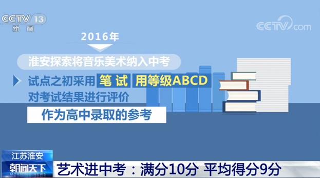 2016年,淮安探索將音樂(lè)美術(shù)納入中考,試點(diǎn)之初采用筆試、用等級(jí)ABCD對(duì)考試結(jié)果進(jìn)行評(píng)價(jià),作為高中錄取的參考。2018年,改革進(jìn)一步深化,音樂(lè)、美術(shù)各以滿分5分分值計(jì)入中考總分,共十分,考核內(nèi)容主要是音樂(lè)、美術(shù)基本知識(shí)和基本素養(yǎng),考試方式由筆試調(diào)整為人機(jī)對(duì)話考核,不再局限在基本知識(shí),而是注重考察學(xué)生對(duì)音樂(lè)和美術(shù)作品等欣賞辨析能力。