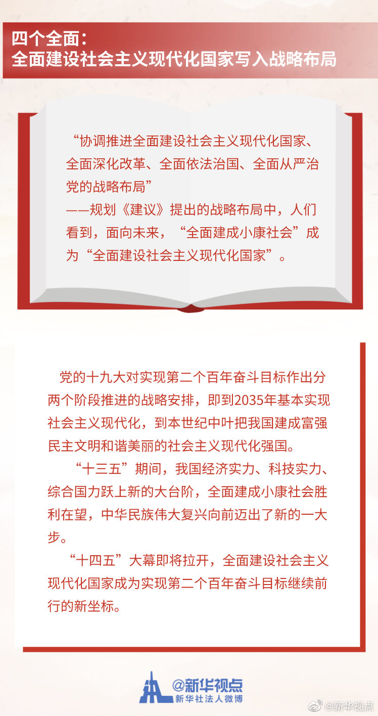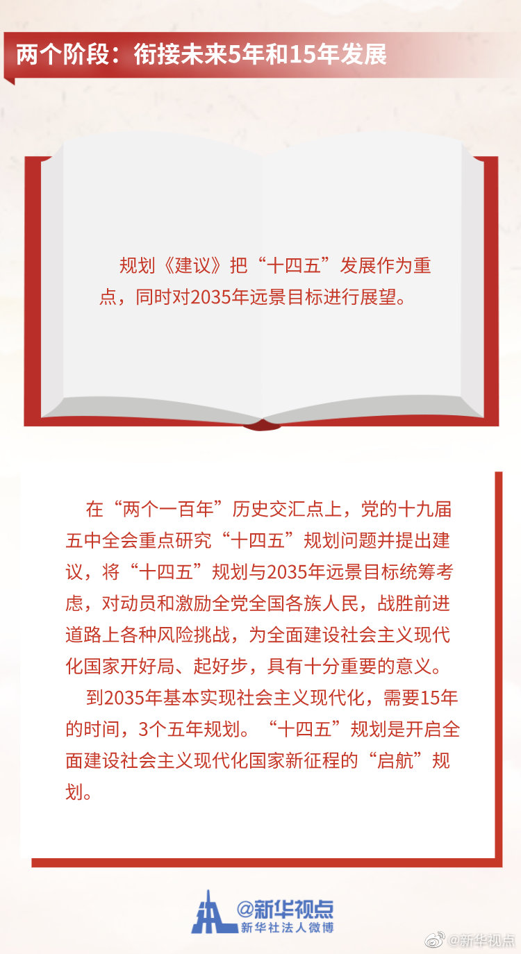 《中共中央關(guān)于制定國(guó)民經(jīng)濟(jì)和社會(huì)發(fā)展第十四個(gè)五年規(guī)劃和二〇三五年遠(yuǎn)景目標(biāo)的建議》3日公布。這份長(zhǎng)約2萬(wàn)字的文件,為未來(lái)5年及15年的中國(guó)發(fā)展勾勒藍(lán)圖。記者梳理出規(guī)劃《建議》中的“一二三四五”,為觀察中國(guó)發(fā)展走向提供一個(gè)獨(dú)特視角。