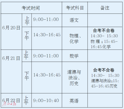 2021年至2023年廣州市初中學(xué)業(yè)水平考試錄取計(jì)分科目考試安排在每年的6月20日至22日進(jìn)行。錄取計(jì)分科目采用“4+4”模式,新增歷史科考試,分值為90分,體育分值提升至70分。語(yǔ)、數(shù)、英各科分值調(diào)整為120分。道德與法治分值調(diào)整為90分。物理和化學(xué)分值不變,各100分。