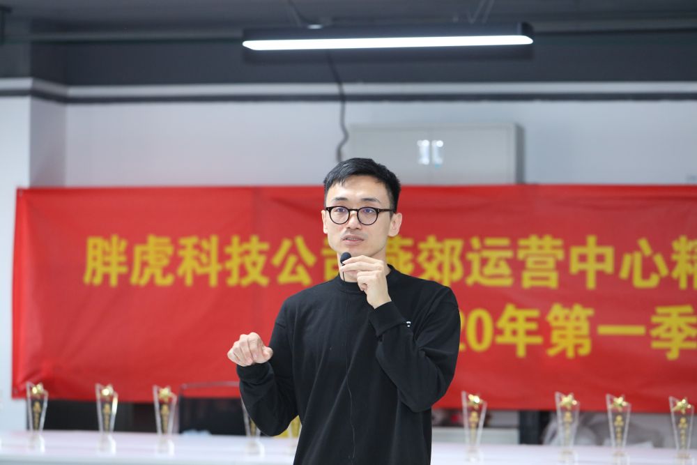 2020年4月,馬成在胖虎燕郊運(yùn)營(yíng)中心第一季度精英員工表彰大會(huì)上發(fā)言。(采訪對(duì)象供圖)