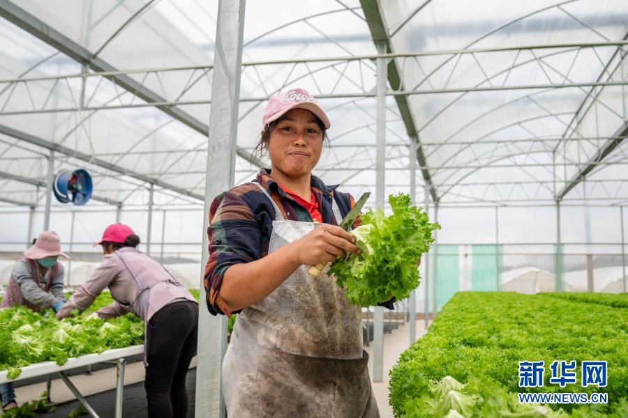 9月29日,搬遷戶徐開蘭(右)在會澤縣華泥產業(yè)扶貧基地采收蔬菜。新華社記者 胡超 攝