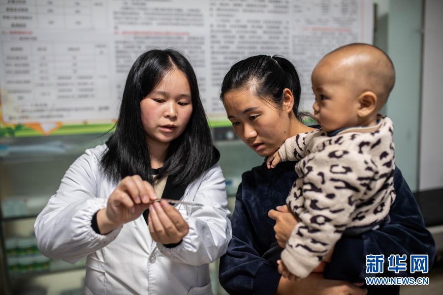 9月23日,搬遷群眾帶孩子在位于鎮(zhèn)雄縣魯家院子易地扶貧搬遷安置點的南苑社區(qū)衛(wèi)生服務站看病。新華社記者 胡超 攝