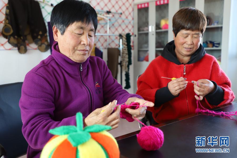 10月29日,在黑龍江省鶴崗市綏濱縣忠仁鎮(zhèn)黎明村的編織工作室,村民們在做手工編織。新華社記者 徐凱鑫 攝