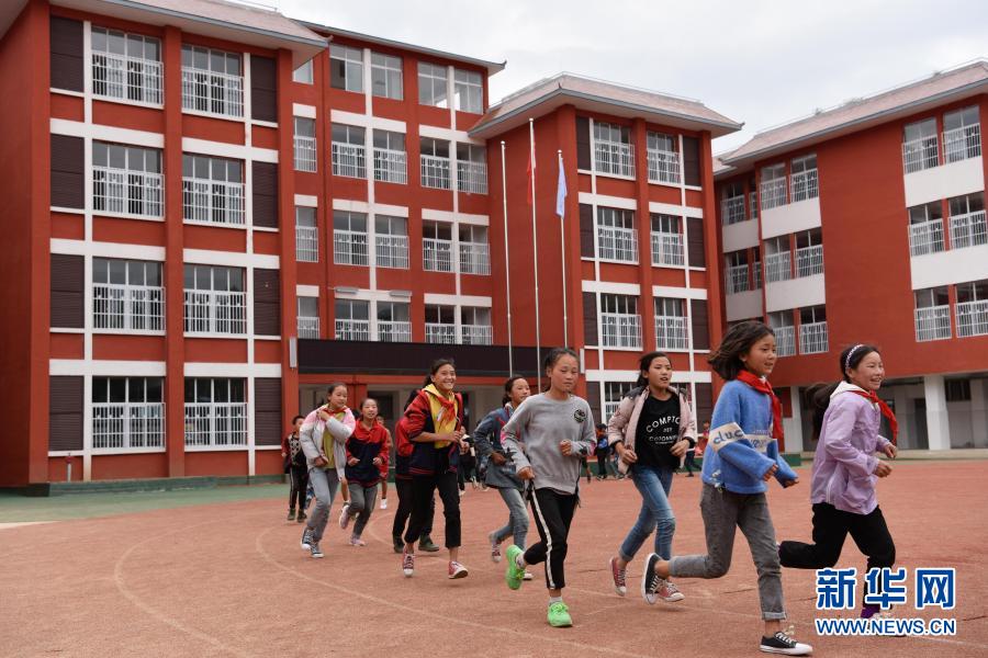 四川省布拖縣阿布澤魯小學的學生們在新操場上跑步(6月22日攝)。新華社記者 胥冰潔 攝