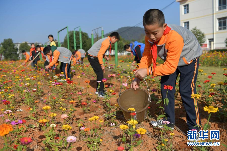 為了更好守護(hù)這片綠,師生一起加入“護(hù)花使者”隊(duì)伍,扛著鋤頭拎著桶,鋤草、松土、澆水……“師生們共同的汗水澆灌了這片花田,因此大家都很愛護(hù)它。”寨下中心小學(xué)教師易夢(mèng)晗說(shuō),種花能幫助學(xué)生了解植物的生長(zhǎng)過(guò)程,還能提高他們的動(dòng)手能力。