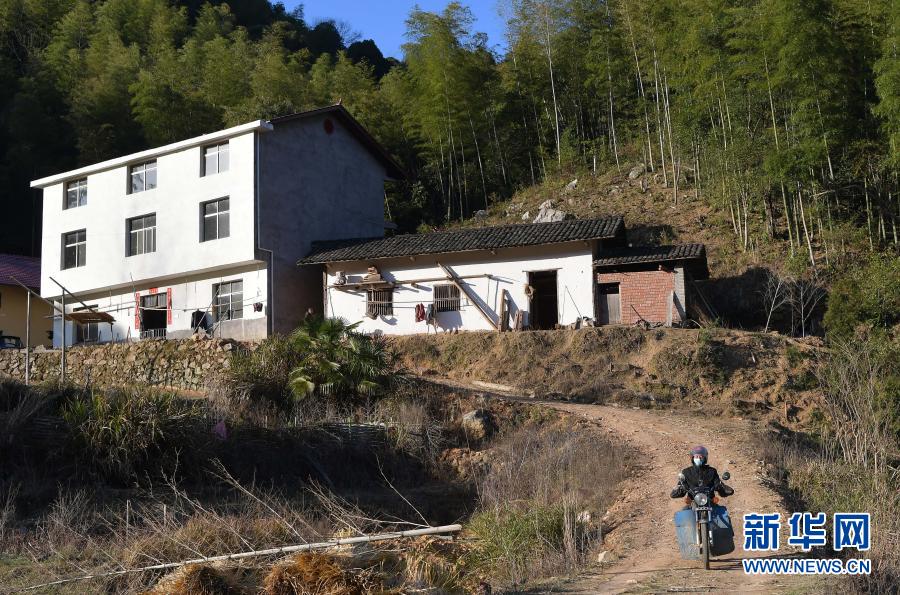 在江西省萬(wàn)載縣高村鎮(zhèn)新竹村,新竹小學(xué)的校長(zhǎng)羅長(zhǎng)石為學(xué)生郭仕錢送完課程之后繼續(xù)趕路,去下一家送課(2月17日攝)。新華社記者 彭昭之 攝