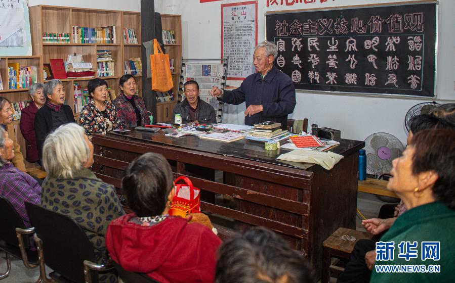 11月17日晚,大陳村村民聚在村圖書室一同唱歌。大陳村每周在圖書室組織三次歌唱活動(dòng),歌曲以自編的村歌為主。新華社發(fā)(江漢 攝)