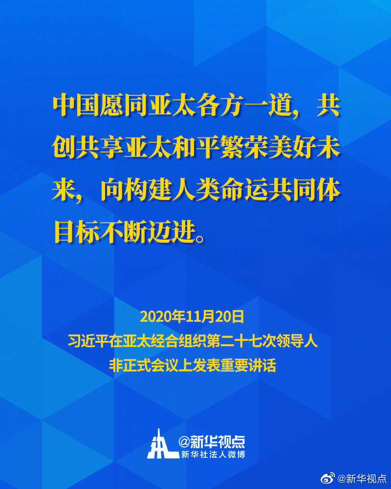 11月20日,國家主席習近平在亞太經(jīng)合組織第二十七次領(lǐng)導人非正式會議上發(fā)表重要講話。一起來看習主席的APEC金句↓↓