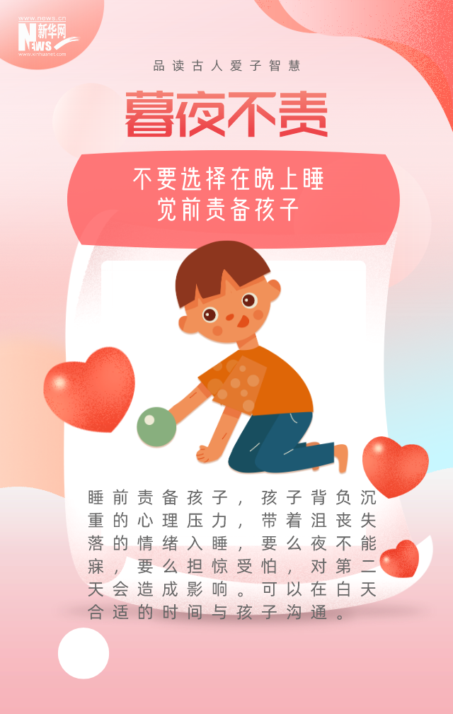 如何呵護孩子幼小的心靈,給他們一個健康的成長環(huán)境?古時候有非常多的教育理念,蘊含了深刻的心理學和教育學原理。其中,著名的愛子“七不責”成為經(jīng)典教育理念:“卑幼有過,慎其所以責讓之者。對眾不責,愧悔不責,暮夜不責,正飲食不責,正歡慶不責,正悲憂不責,疾病不責?!薄=裉焓鞘澜鐑和?,一起品讀古人的愛子智慧。