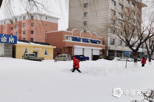 受強(qiáng)降雪影響,內(nèi)蒙古通遼市市區(qū)積雪深厚。(圖/楊旋)