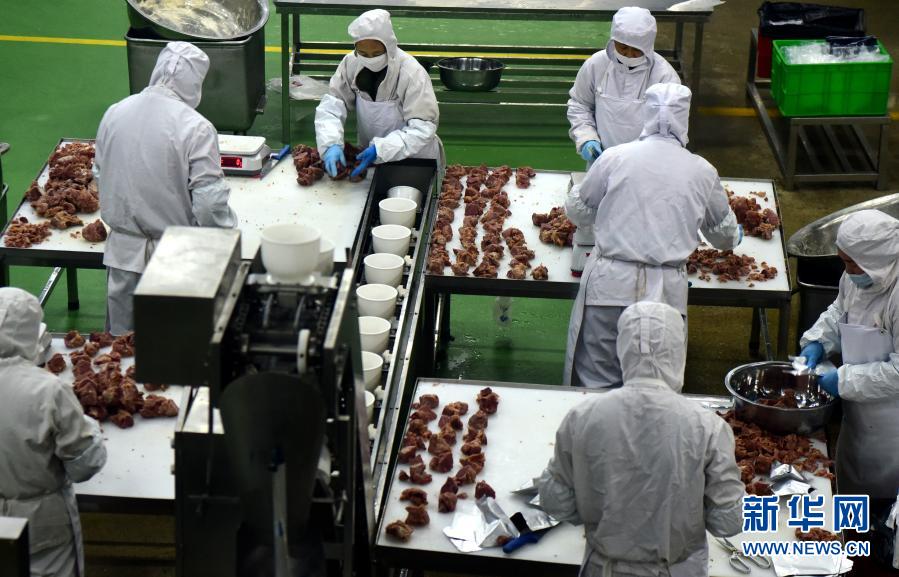 這是河南省駐馬店市泌陽縣恒都食品有限公司肉制品精深加工車間一角(10月29日攝)。