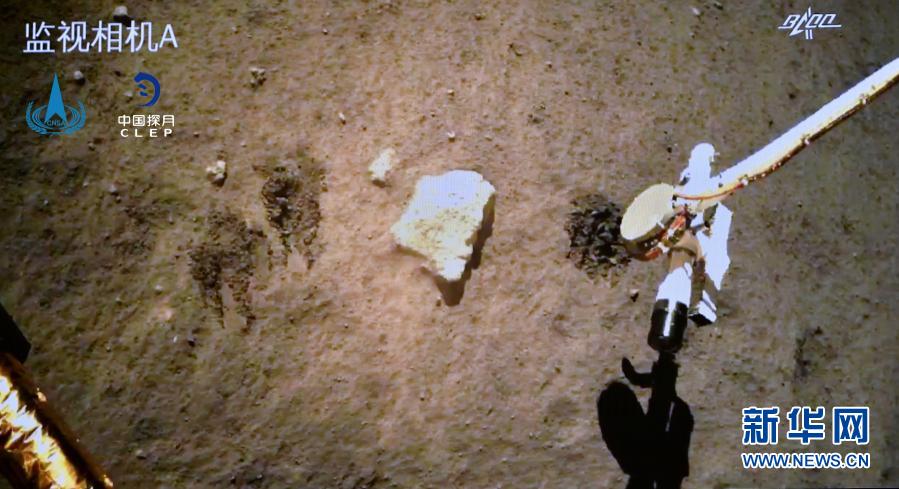 12月2日,嫦娥五號探測器在月球表面自動(dòng)采樣。新華社發(fā)(國家航天局供圖)