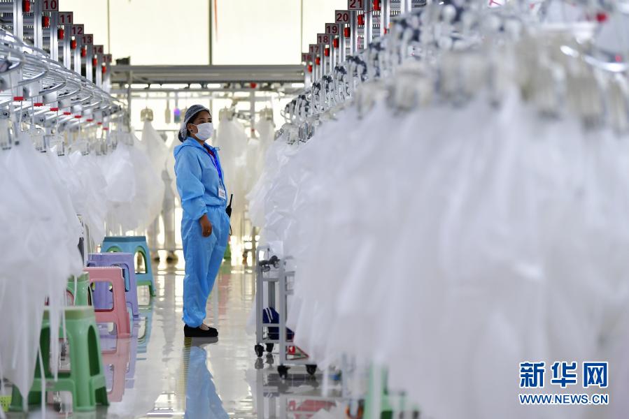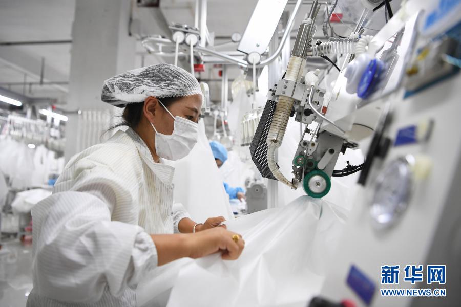 在臨夏回族自治州積石山縣,依托東西部扶貧協(xié)作平臺引進(jìn)的服裝加工企業(yè)甘肅拓奇扶貧車間的員工在服裝加工生產(chǎn)線上作業(yè)(8月9日攝)。新華社記者 陳斌 攝