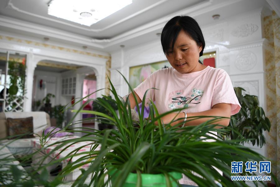 在臨夏回族自治州臨夏縣土橋鎮(zhèn)易地扶貧搬遷安置點,搬遷戶楊喜梅在家中收拾家務(wù)(8月11日攝)。新華社記者 陳斌 攝