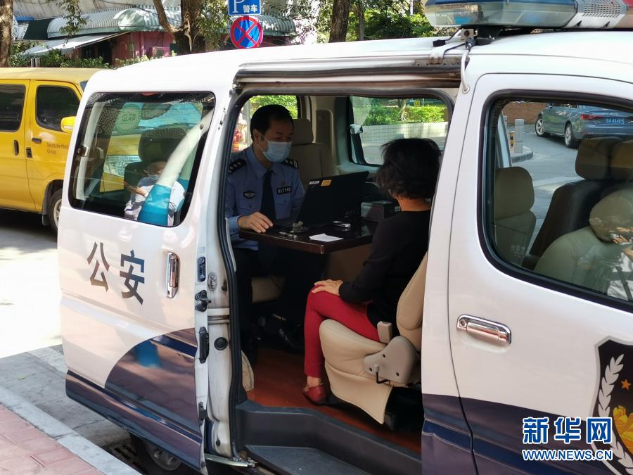 廣州公安的愛心服務(wù)車為行動不便的市民提供上門服務(wù)(10月27日攝)。新華社發(fā)(廣州市公安局供圖)
