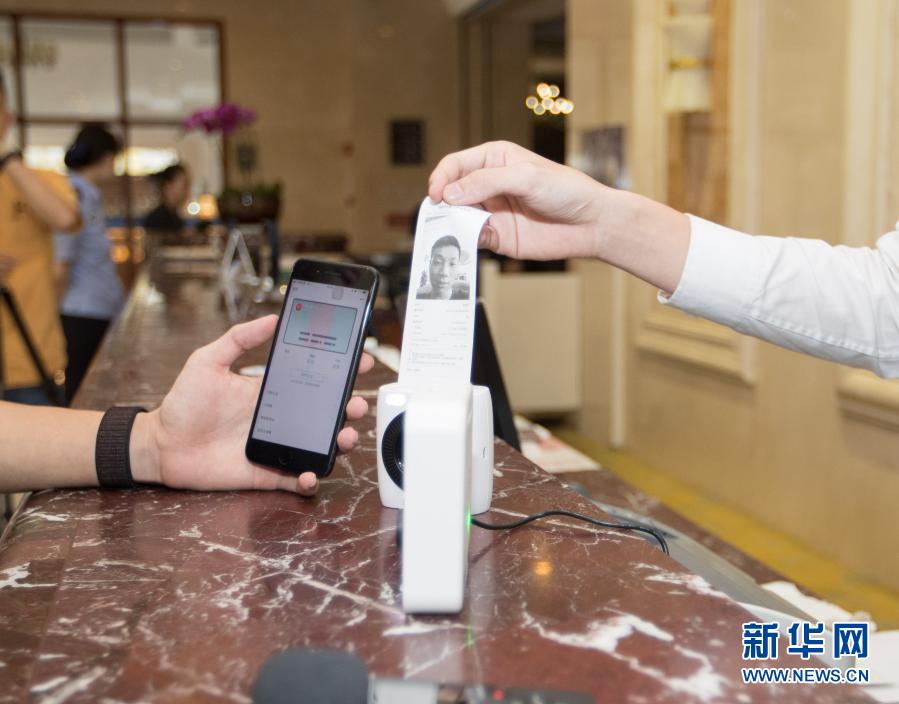 這是“微警認證”身份認證技術(shù)在辦理酒店入住時的應(yīng)用場景(2018年7月19日攝)。新華社發(fā)(廣州市公安局供圖)