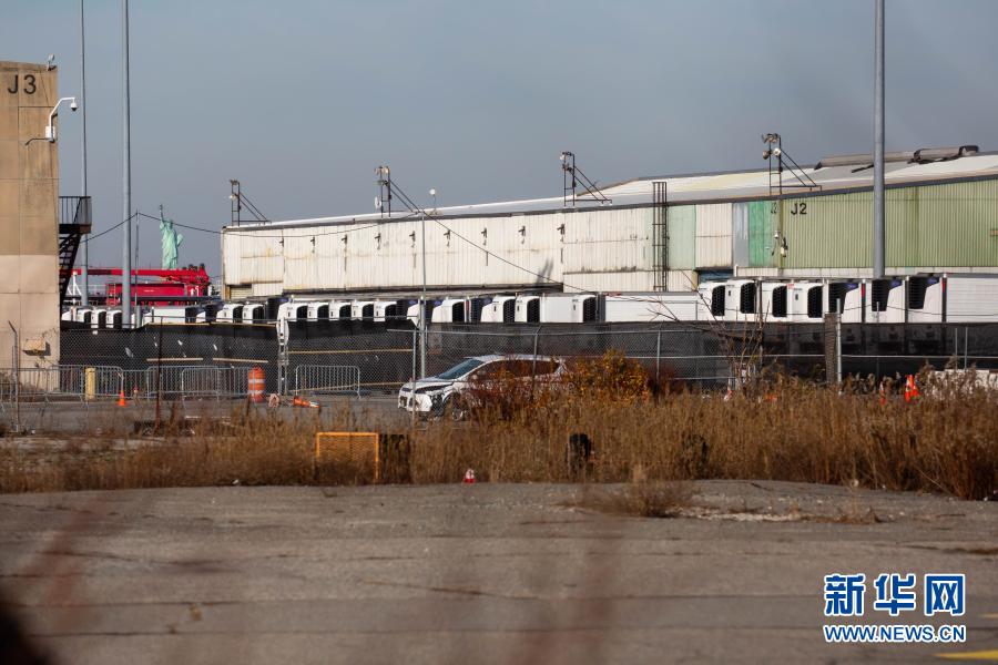 12月3日,在美國紐約,存放新冠病亡者尸體的冷藏車停放在一處臨時停尸場內(nèi)。新華社發(fā)(郭克 攝)