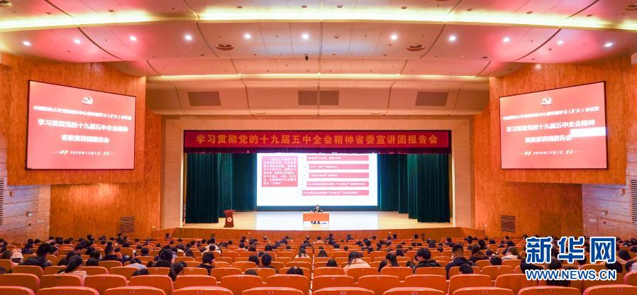 中共江蘇省委宣講團(tuán)在中國藥科大學(xué)進(jìn)行學(xué)習(xí)貫徹黨的十九屆五中全會精神專題報告會(12月1日攝)。新華社記者 李博 攝