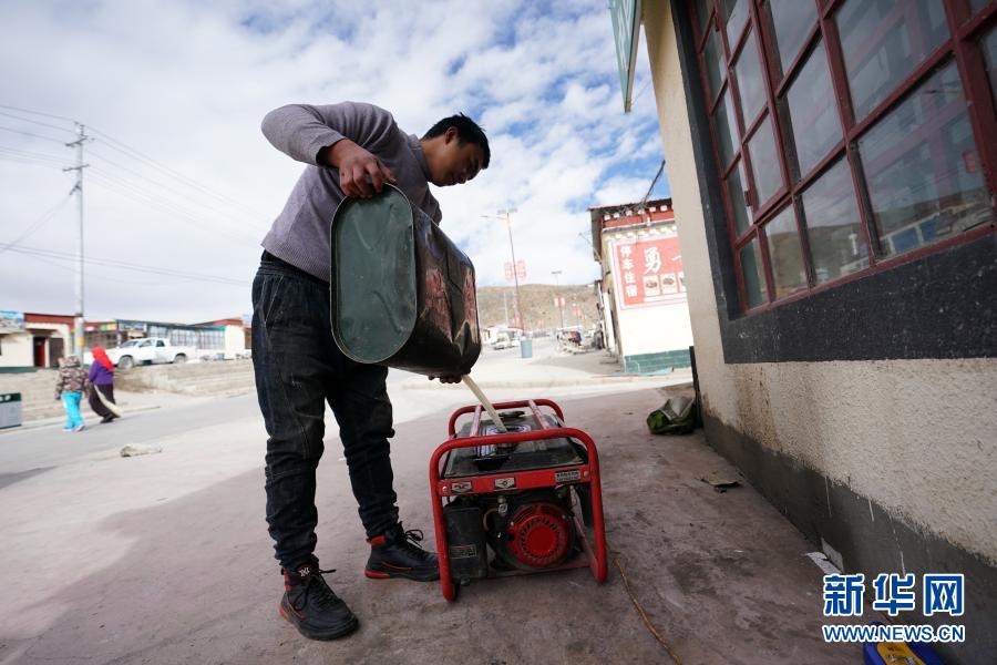 在西藏阿里地區(qū)普蘭縣巴嘎鄉(xiāng)崗莎村,一家飯店的工作人員準(zhǔn)備用發(fā)電機(jī)發(fā)電(11月29日攝)。新華社記者 詹彥 攝