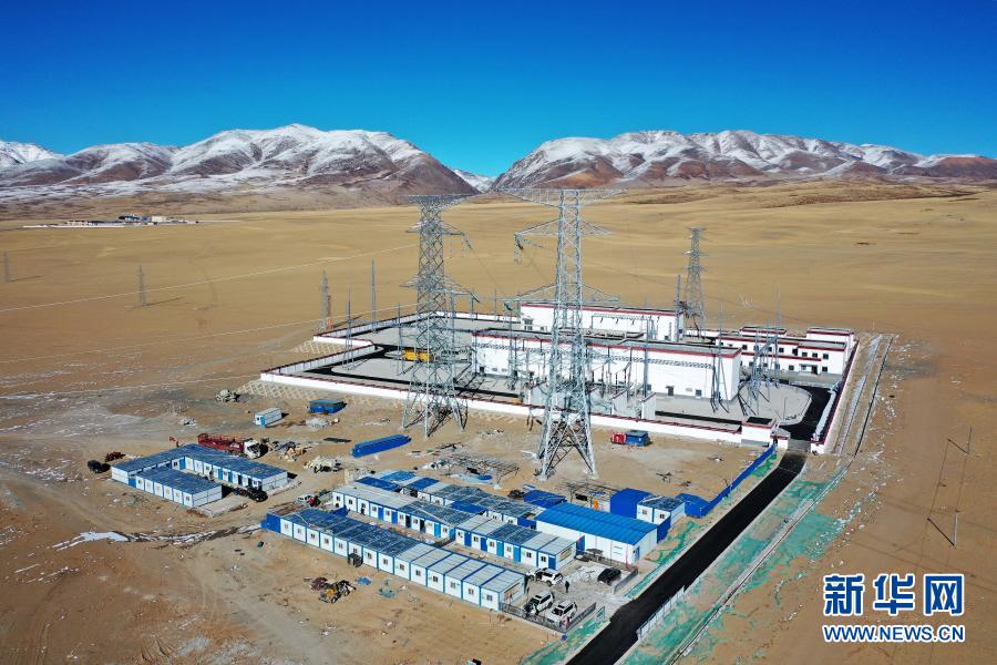 這是11月27日拍攝的西藏阿里與藏中電網(wǎng)聯(lián)網(wǎng)工程霍爾220千伏變電站(無(wú)人機(jī)照片)。新華社記者 詹彥 攝