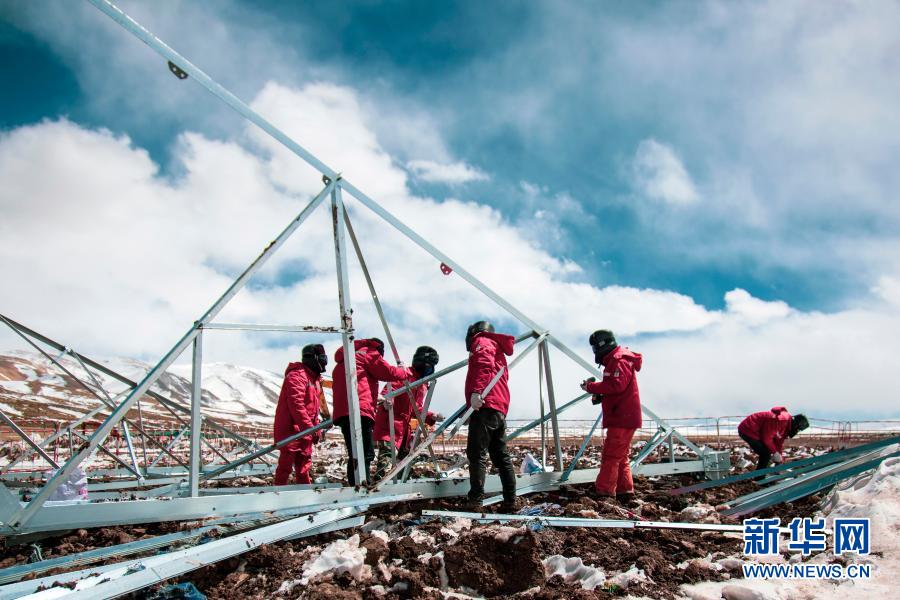 “施工人員服用保護(hù)心臟的藥,背著氧氣瓶上到山頂,工作時(shí)心跳一直保持在每分鐘120次以上,一個(gè)小時(shí)就得輪班下來(lái)?!弊T晉說(shuō),山頂?shù)奶鞖庾兓脽o(wú)常,有時(shí)晴朗,強(qiáng)烈的紫外線照得大家滿臉?biāo)荩挥袝r(shí)一場(chǎng)大雪,有的工人會(huì)瞬間雪盲。