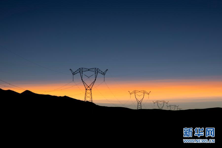11月29日在西藏阿里地區(qū)普蘭縣拍攝的西藏阿里與藏中電網(wǎng)聯(lián)網(wǎng)工程輸電鐵塔。新華社記者 詹彥 攝