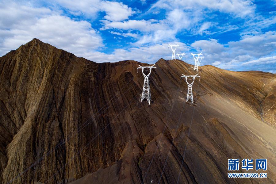 10月30日在西藏阿里地區(qū)普蘭縣拍攝的西藏阿里與藏中電網(wǎng)聯(lián)網(wǎng)工程輸電鐵塔。新華社發(fā)
