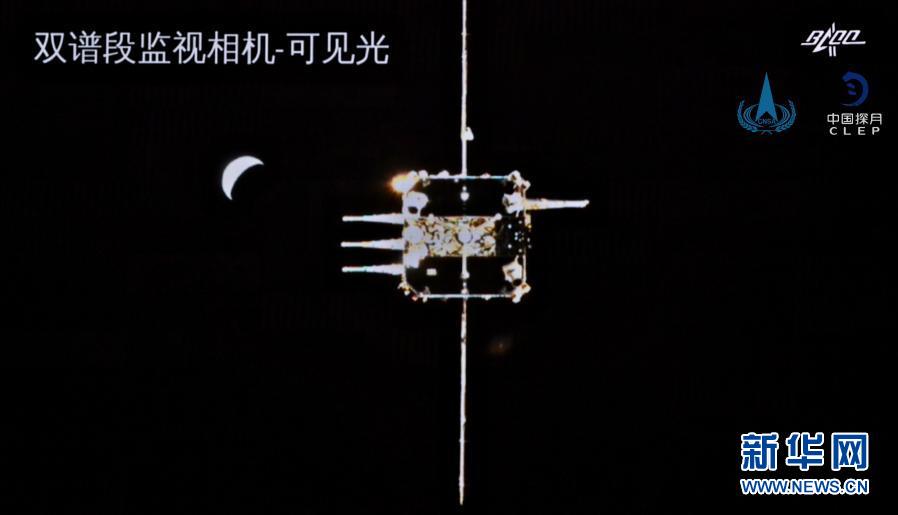 這是嫦娥五號軌道器返回器組合體逐漸接近上升器畫面。新華社發(fā)(國家航天局供圖)