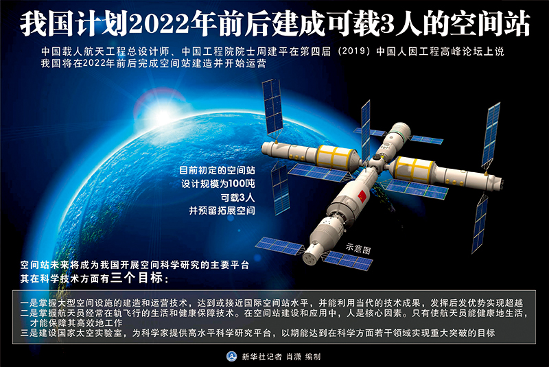 2022年前后,中國空間站將正式完成在軌建造任務(wù)。屆時,中國將在空間站上部署航天醫(yī)學、空間生命和生物、材料、微重力燃燒和流體、物理、天文等領(lǐng)域的高水平實驗設(shè)備,科學家可在空間站開展大量空間科學前沿領(lǐng)域的研究工作。