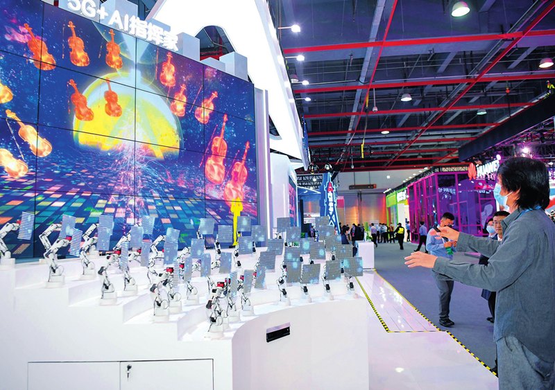 11月26日,工作人員在2020世界5G大會上調(diào)試5G體驗設(shè)施 鄧華攝 / 本刊