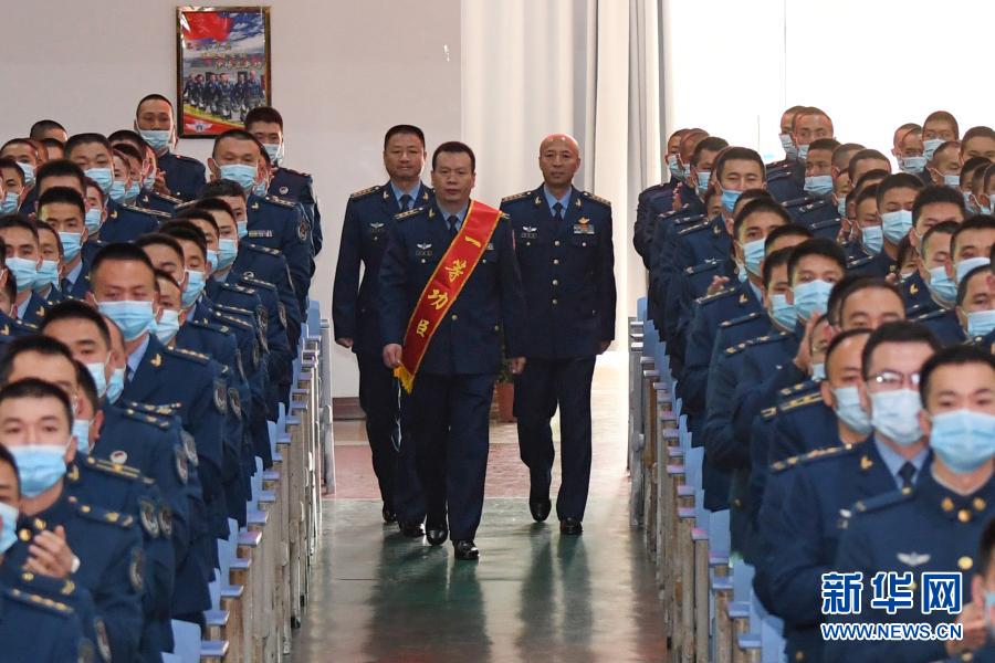 12月8日,南部戰(zhàn)區(qū)空軍航空兵某旅舉行授獎(jiǎng)大會(huì),王建東(中)走入會(huì)場(chǎng)。新華社發(fā)(唐俊 攝)